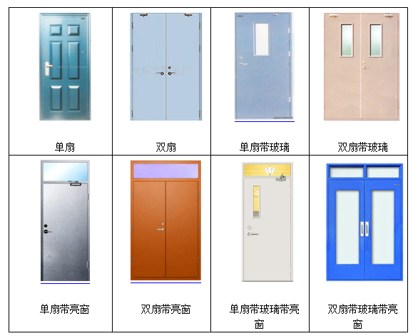 防火門如按結構分類,可分為八類:單扇、雙扇,單扇帶玻璃、雙扇帶玻璃,單扇帶亮窗、雙扇帶亮窗,單扇帶玻璃帶亮窗、雙扇帶玻璃帶亮窗。